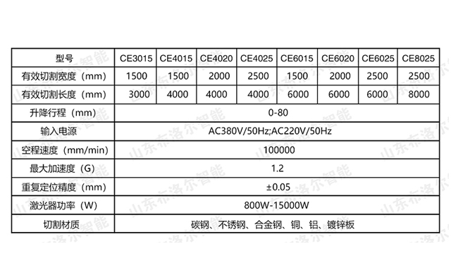 一般來講,很多激光切割機廠家在給設備命名的時候都會以加工幅面來命名,那么如何來理解這個名字呢?比如,以布洛爾激光的CE3015光纖激光切割機為例,前面的CE代表的是產品類型,即為平板式,重點的是后面3015的數字表示是該設備有效的加工幅面為長3000mm和寬1500mm。所以對于那些比較懂行的人,都能夠從名稱中快速的認識該設備的各個參數。